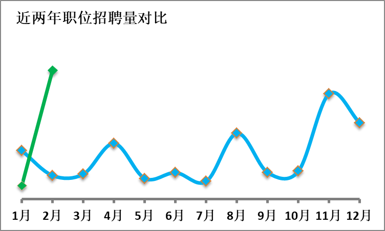 圖1反映了近年來(lái)專(zhuān)利分析師的職位需求量的變化趨勢(shì)??梢钥闯?,除了2020年受疫情影響外,近五年社會(huì)對(duì)專(zhuān)利分析師的需求保持穩(wěn)定。在圖2中,藍(lán)色折線代表2021年招聘職位量,綠色折線為2022年一、二月份招聘量??梢悦黠@看出,2022年二月社會(huì)需求迎來(lái)了大爆發(fā),同比增長(zhǎng)了569%,達(dá)到了歷史新高,而每年招聘的第一個(gè)黃金季通常在三、四月份,因此有理由相信,屆時(shí)專(zhuān)利分析師的社會(huì)需求統(tǒng)計(jì)數(shù)據(jù)會(huì)更亮眼。