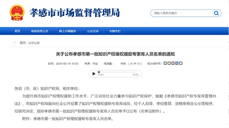 このたび、湖北省孝感市市場(chǎng)監(jiān)督管理局は、初の知的財(cái)産権保護(hù)支援専門家データベースのメンバーリストを正式に発表しました。三聚陽(yáng)光からは、張建綱総裁、高東輝副総裁、朱正強(qiáng)副総裁、羅嘯コンサルティング事業(yè)部長(zhǎng)、向長(zhǎng)松研究コンサルティング部マネージャー、解立艷氏、龐世崇氏の7名が見事選出されました。この栄譽(yù)は、三聚陽(yáng)光が知的財(cái)産権保護(hù)支援分野で卓越した実力を持つことを示すと同時(shí)に、同社が知的財(cái)産サービス分野で広く認(rèn)められていることを証明しています。