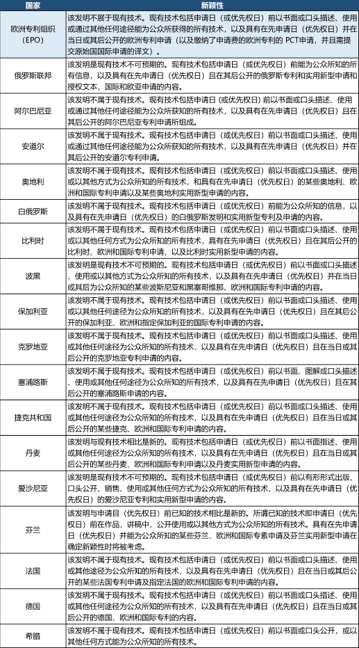 附:各國對(duì)“新穎性”的定義(歐洲篇)